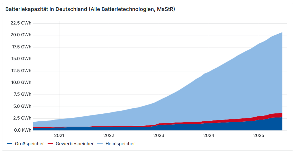 Aber auch die kommerziellen Großspeicher im Megawattstunden-Bereich werden jetzt zunehmend geplant und gebaut. Das Geschäftsmodell umfasst dabei sowohl das Ausnutzen der täglichen Tag und Nacht Schwankungen des Strompreises im Sommer als auch den Einsatz im Rahmen der Netzstabilisierung. Batteriespeicher tragen so zunehmend zur sinnvollen zeitlichen Verteilung des Stroms bei.